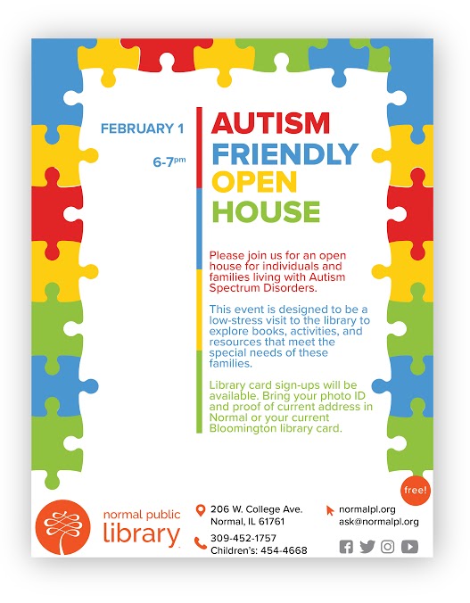 Library card sign-ups will be available. Bring your photo ID and proof of current address in Normal or your current Bloomington library card.