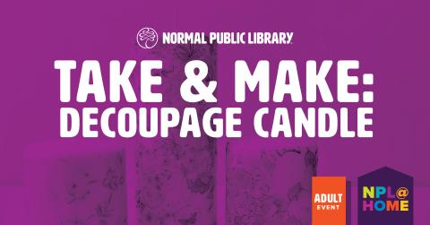 Pick up a Decoupage Candle kit from NPL. With this kit, you will receive supplies and instructions to make a beautiful patterned candle!