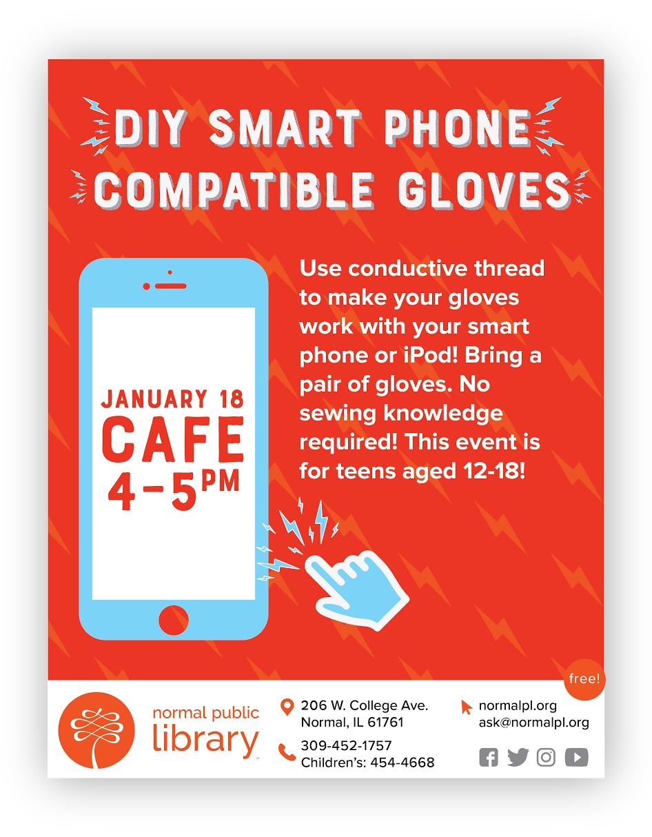 Use conductive thread to make your gloves work with your smart phone or iPod! Bring a pair of gloves. No sewing knowledge required!