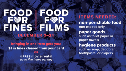 Bringing in one item gets you $1 in fines cleared from your card OR 1 free movie rental that day. Bring in up to five items per day.