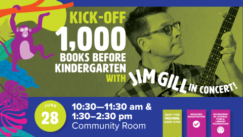 Gill's distinctive music play is an invitation to children, parents, and grandparents to sing and play together. This event kicks off our 1,000 Books Before Kindergarten program!