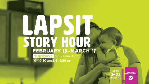 Lapsit is a five-week interactive program for babies age 0 to 23-months and their grown ups. You'll sing songs, do fingerplays, and enjoy books and baby games, all intended to stimulate and enhance babies' development of language and senses.