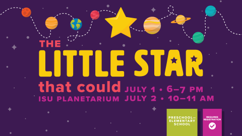 Meet us at the ISU Planetarium to experience a free planetarium show! The Little Star That Could is the story of an average yellow star searching for planets of his own. Along his way, Little Star encounters other stars, learns what makes each star special, and discovers that stars can combine to form clusters and galaxies. Everyone will learn basic information about the planets and our solar system!