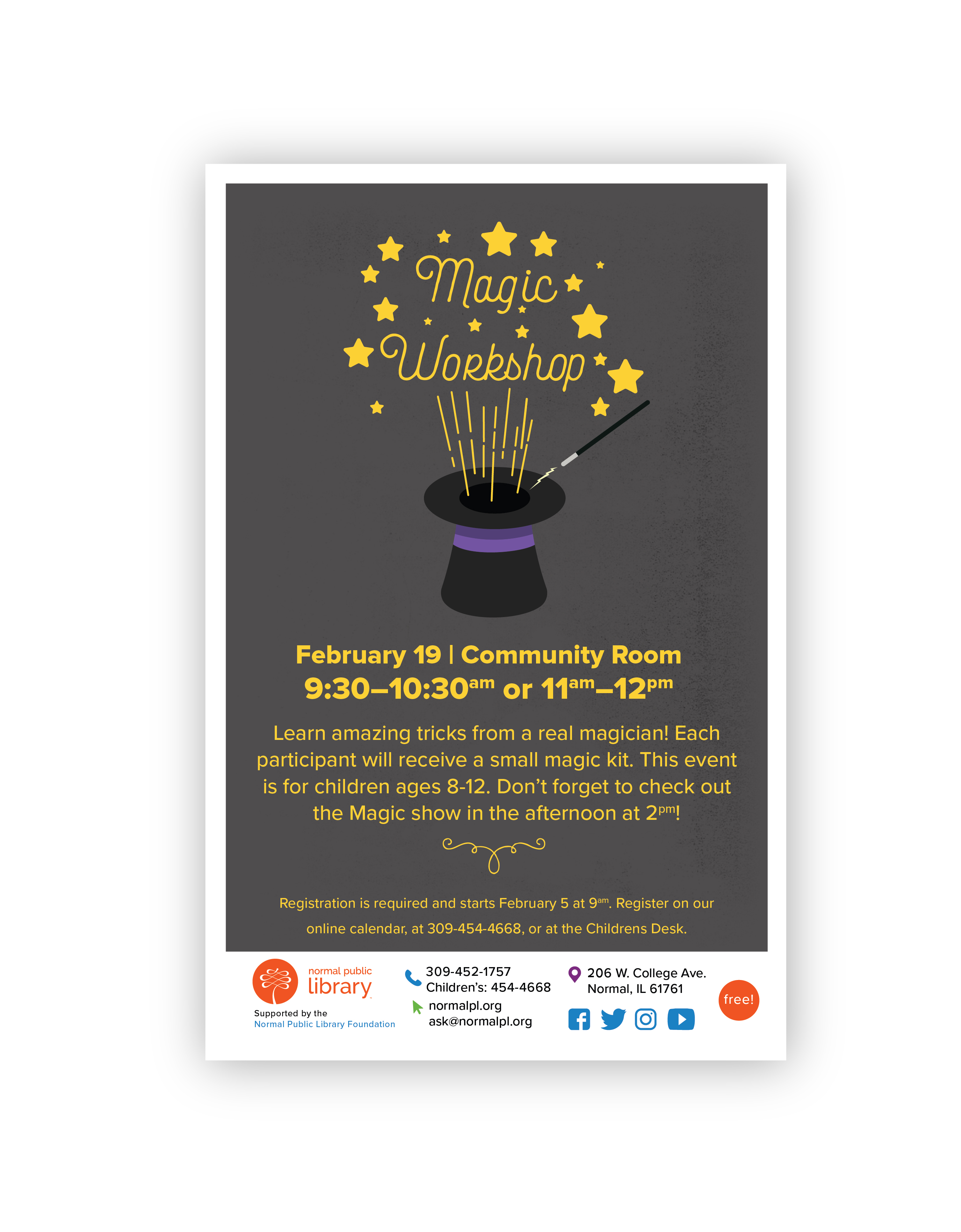 This event is for ages 8-12. Registration is required and begins on February 5 at 9am.