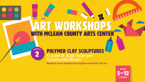 The McLean County Arts Center is pleased to present the Spring 2019 Normal Public Library Workshops. Funded by a grant from the Normal Public Library Foundation and the McLean County Arts Center, this workshop series is organized by the McLean County Arts Center and hosted by the Normal Public Library.