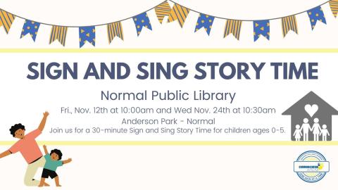 Join Miss Meghan of Communication Junction at Anderson Park near the tennis courts for Sign & Sing in the Park! This story time is full of songs, rhymes, and books shared in American Sign Language.