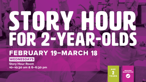 Two-year-olds and their grown-ups are invited to enjoy stories, songs, and activities in this five-week interactive program. Since this class is just for you and your two-year-old, please be sure to make other arrangements for siblings.