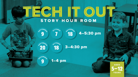 Drop in for a chance to Tech-It-Out with gadgets in our Story Hour Room! Kids between the ages of 5 and 12 will have the opportunity to engage their problem-solving skills and experience real-world applications of science, engineering, programming, and more!