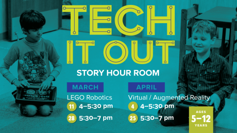 Drop in for a chance to Tech-It-Out with gadgets in our Story Hour Room! Kids between the ages of 5 and 12 will have the opportunity to engage their problem-solving skills and experience real-world applications of science, engineering, programming, and more!