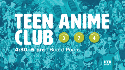 Held on the first Tuesday of every month, Teen Anime Club is for any teens interested in Japanese comics and animation.