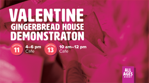 Join gingerbread artist and NPL staff member Sheri Bruun as she creates valentine gingerbread houses. Watch her work, ask questions, and even give input on the final product.