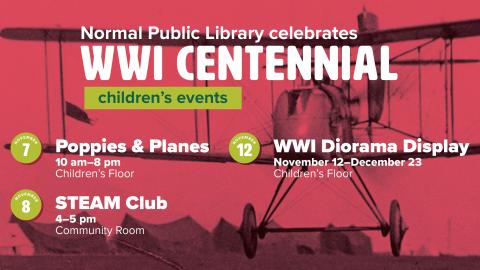 Kids! Create your shoebox-sized, WWI-themed diorama at home or at our November STEAM Club meeting on November 8 at 4pm. Drop it off at the Children's Desk during the week of November 12. We'll display your diorama in the Children's Department until the week of December 16. Come back in and pick up your diorama between December 16 and 23. Dioramas left on display after December 23 will be recycled.