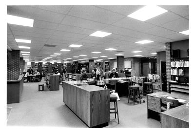 - We've moved our check-out desk, too: it's in the middle of the 1973 space. And instead of checking in books by hand as we did way back when, you can now feed them into the wall slot for our mechanical sorter and watch in fascination through the glass as they drop into appropriate bins.